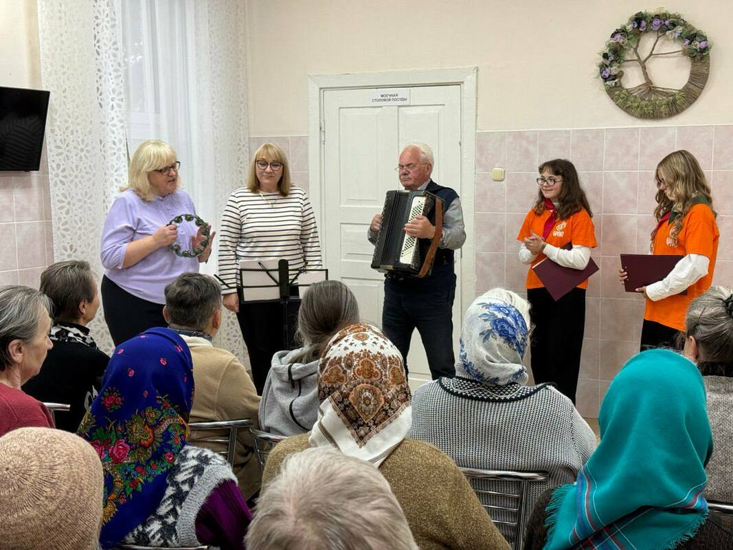 В отделении круглосуточного пребывания прошёл концерт «А в сердце молодость поет», посвящённый Дню пожилых людей. В исполнении коллектива и волонтерского отряда «Энергия добра» Лидского РЦДиМ звучали любимые песни, добрые слова и искренние пожелания — всё, чтобы подарить нашим подопечным радость и тепло. А завершением праздника стало вручение небольших сувениров — как знак внимания и заботы.