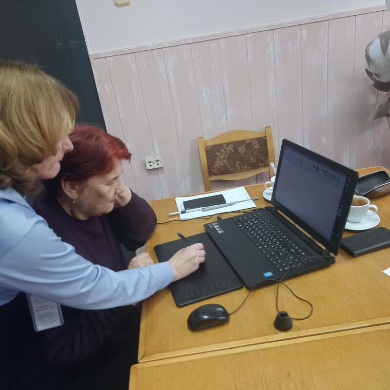 Практическое занятие "КОМПания" состоялось сегодня в Берёзовке. Волонтёры отделения социальной реабилитации, абилитации инвалидов познакомили граждан золотого возраста с первичными навыками работы на компьютере и графическом планшете.
